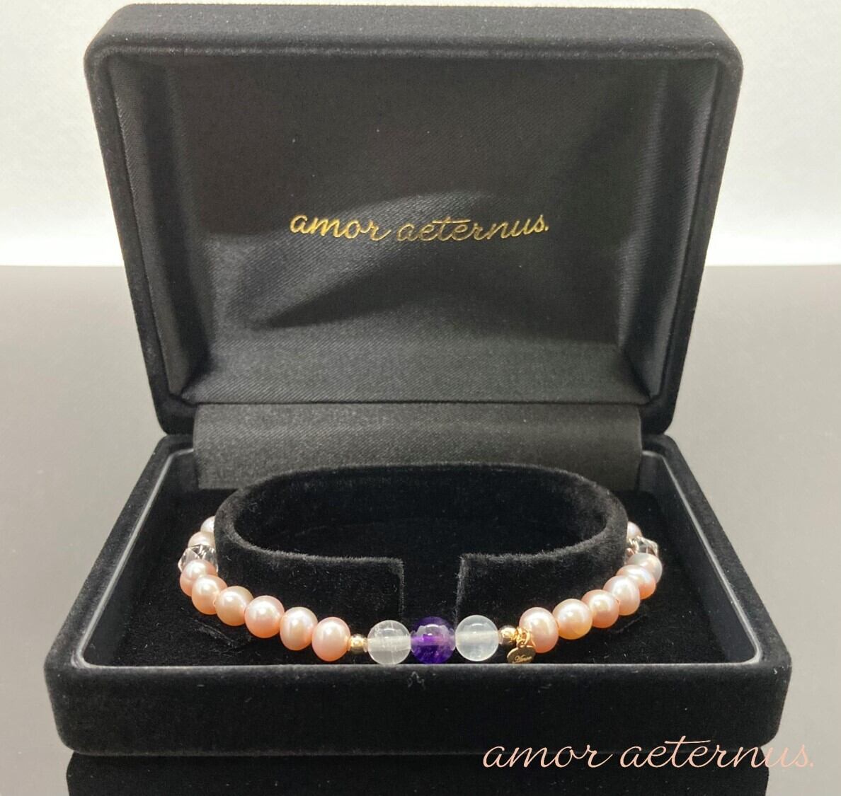 アメジストとシルバーピンクの淡水パールの組み合わせが上品な仕上がりとなっております。